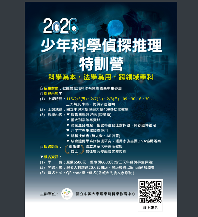 四、招生對象:對鑑識科學有興趣之國中、高中學生。